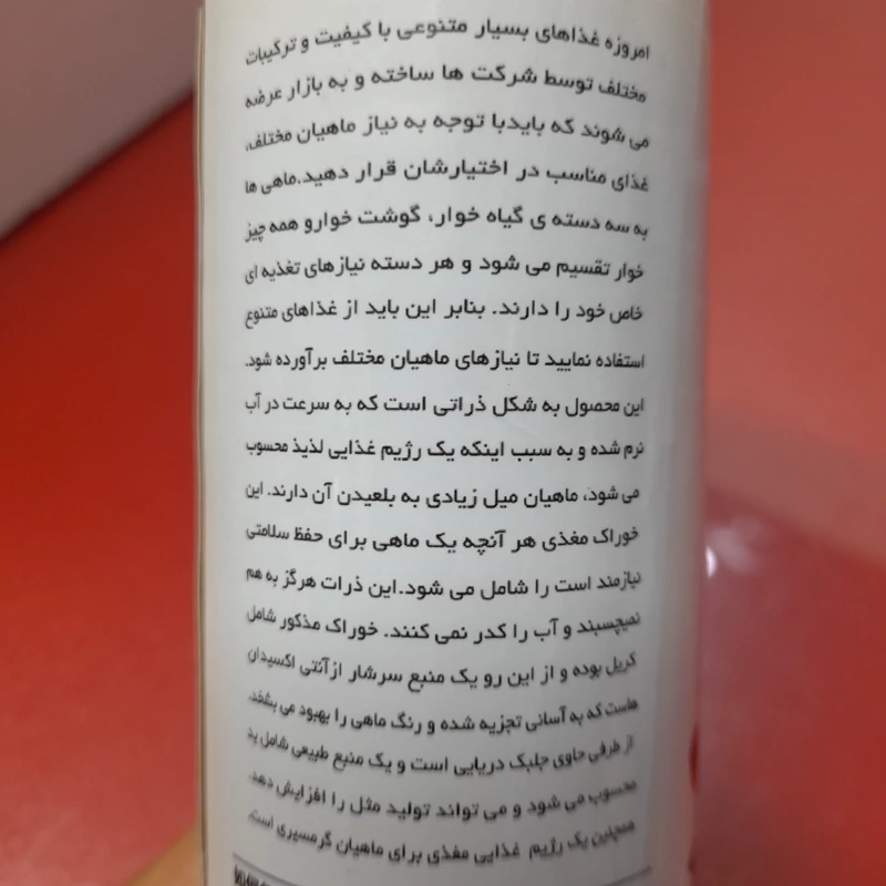 حاوی ماهی و مشتقات آن، مشتقات گیاهی، عصاره پروتئین گیاهی، نرم تنان و سخت پوستان، غلات، جلبک، مخمر، روغنها و چربیها، مواد معدنی، و رنگدانههای طبیعی