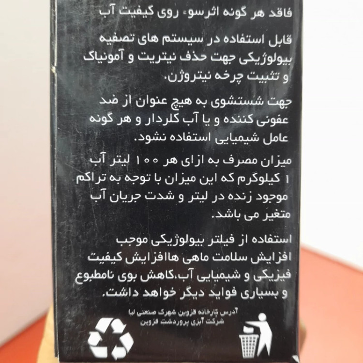 میزان مصرف: به ازای هر 100 لیتر آب 1 کیلوگرم که این میزان با توجه به تراکم موجود زنده در لیتر و شدت جریان آب متغییر میباشد