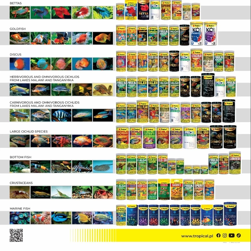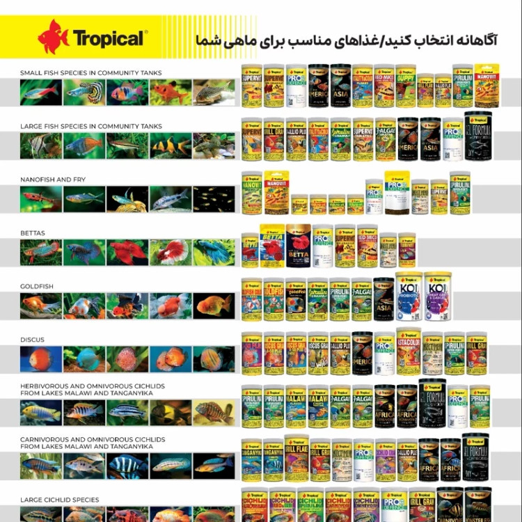 مناسب برای تغذیه روزانه ماهیان کوچک آکواریوم مانند خانواده تترا و رازبورا، گوپی، کوریها، نئونها، میگو و …