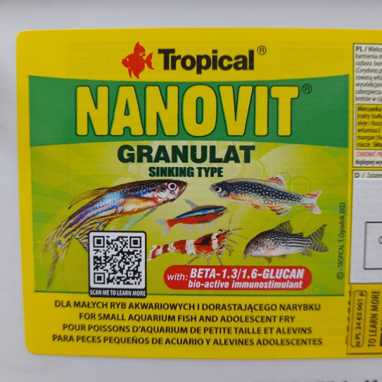 از سری غذاهای آکواریومی شرکت تروپیکال (Tropical Nanovit Granulat tin)